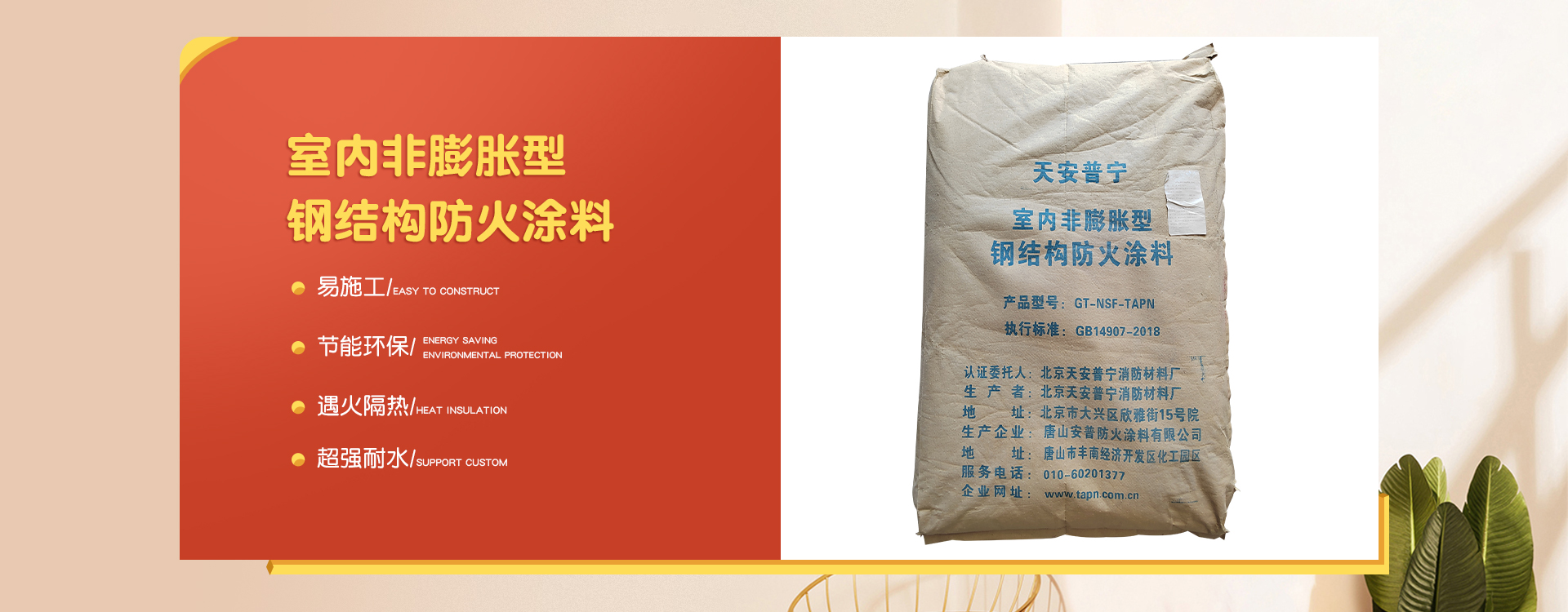 北京天安普寧消防材料廠是一家從事防火涂料二十多年生產企業(yè),企業(yè)集研制開發(fā)、生產銷售及各類防火涂料施工為一體。 企業(yè)員工總數100人,其中管理人員20人,科研人員10人,銷售50人,其他員工十多人。企業(yè)生產用地面積2000平方米左右,辦公用地面積1000平方米。擁有先進的生產設備20多臺,年生產量10000余噸。 企業(yè)擁有一支高學歷、資歷深的研發(fā)隊伍,以科學的管理,先進成套的生產流水線設備及完善的產品質量檢驗措施,開發(fā)出TAPN系列防火涂料產品,可以滿足于各類建筑工程中不同基材、不同技術要求的防火保護,天安普寧系列防火涂料全部經過《國家消防及阻燃產品質量監(jiān)督檢驗中心》檢驗,理化性能合格,防火性能高,通過《應急管理部消防產品合格評定中心》認證并獲得《消防身份信息標識》。 企業(yè)結合多年的工程施工實踐經驗,培養(yǎng)了一支專業(yè)有素、經驗豐富、高質量、效率高的防火涂料施工隊伍,可承攬各類高層、多層、大跨度廠房及網架鋼結構防火涂料噴涂施工服務。 企業(yè)始終為用戶全心全意服務,不斷滿足各建設單位的要求,共同為我國的建筑消防事業(yè)作出更大的貢獻,衷心感謝新老客戶的支持,全體員工熱情歡迎廣大用戶的光臨惠顧。